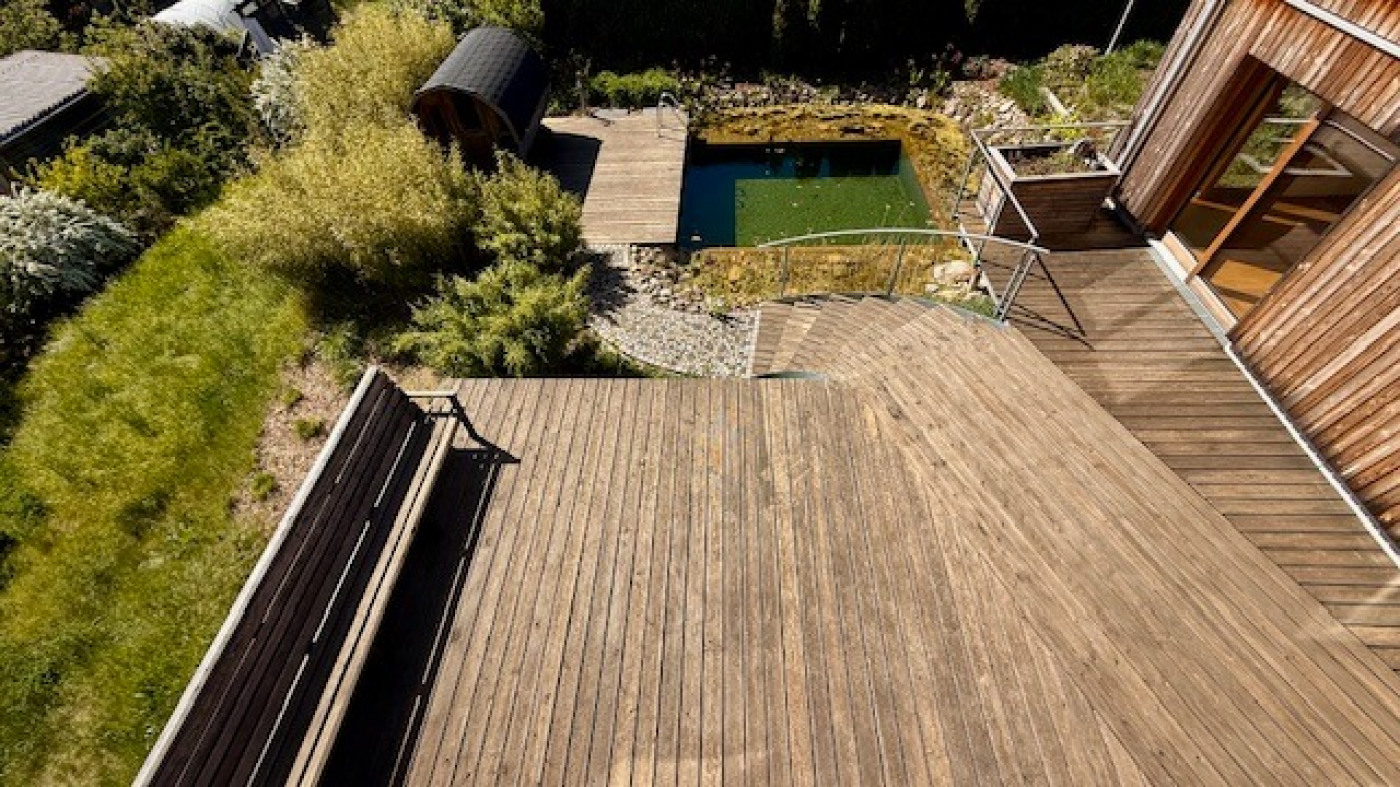 Diese moderne sehr besondere Immobilie besticht durch ihre hochwertige Ausstattung und energieeffiziente Bauweise. Mit einer Wohnfläche von 124 m² erstreckt sich das unterkellerte Haus über zwei Etagen und wurde im Jahr 2018 erbaut. Die Immobilie verfügt über eine Wärmepumpe als Heizung, Solarthermie mit großer Teslabatterie und einer Wallbox zum Aufladen Ihres PKW. Eine große Terrasse, eine Balkon, ein geschmackvoll angelegter Schwimmteich sowie eine Außensauna geben dem Objekt eine besondere Note. Auf dem 749 m² großen, durchdacht angelegten Grundstück befinden sich ca. 2 PKW Stellplätze.