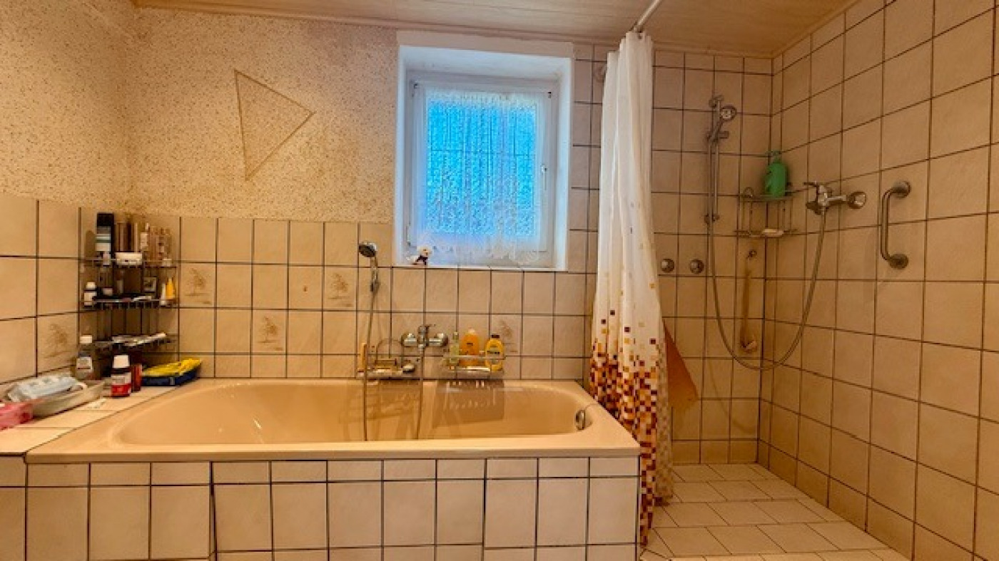 - Ausstattung des Bades Fenster Badewanne Dusche